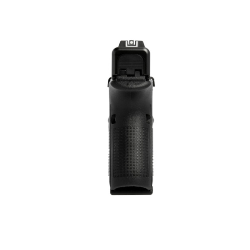 - le nouveau chargeur comporte un élévateur orange et un talon de chargeur légèrement surdimensionné (sauf G26); le pistolet reste compatible avec tous les anciens chargeurs Glock.