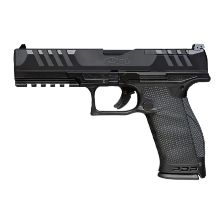 Ce pistolet en calibre 9x19 offre une capacité de 18 coups et des caractéristiques techniques haut de gamme. Il est équipé d’une détente Performance Duty, avec un départ franc compris entre 2 et 2,1 kg, et une course ajustée selon la taille de poignée (S/M/L) de 70 à 73 mm.