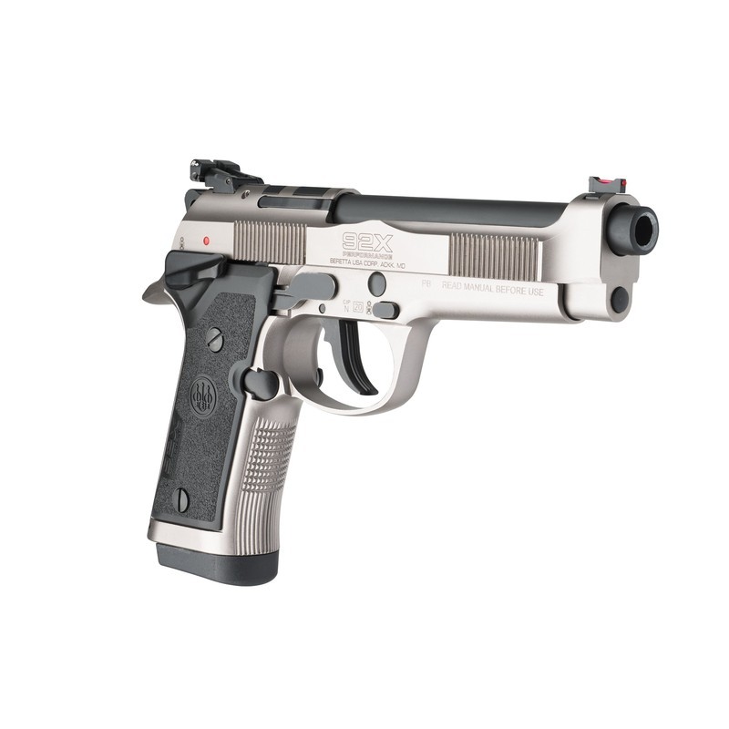 Les plaquettes fines 92X à texture agressive ainsi que le quadrillage de la carcasse offrent une prise instinctive et un contrôle optimal en cible. Les dents de scie à l’avant et à l’arrière de la glissière assurent une adhérence maximale dans toutes les conditions. Le bouton de déverrouillage du chargeur est réversible et facilement accessible. La sécurité sur la carcasse ainsi que le loquet de démontage sont conçus pour fonctionner comme points d’appui, garantissant un contrôle total de l’arme.