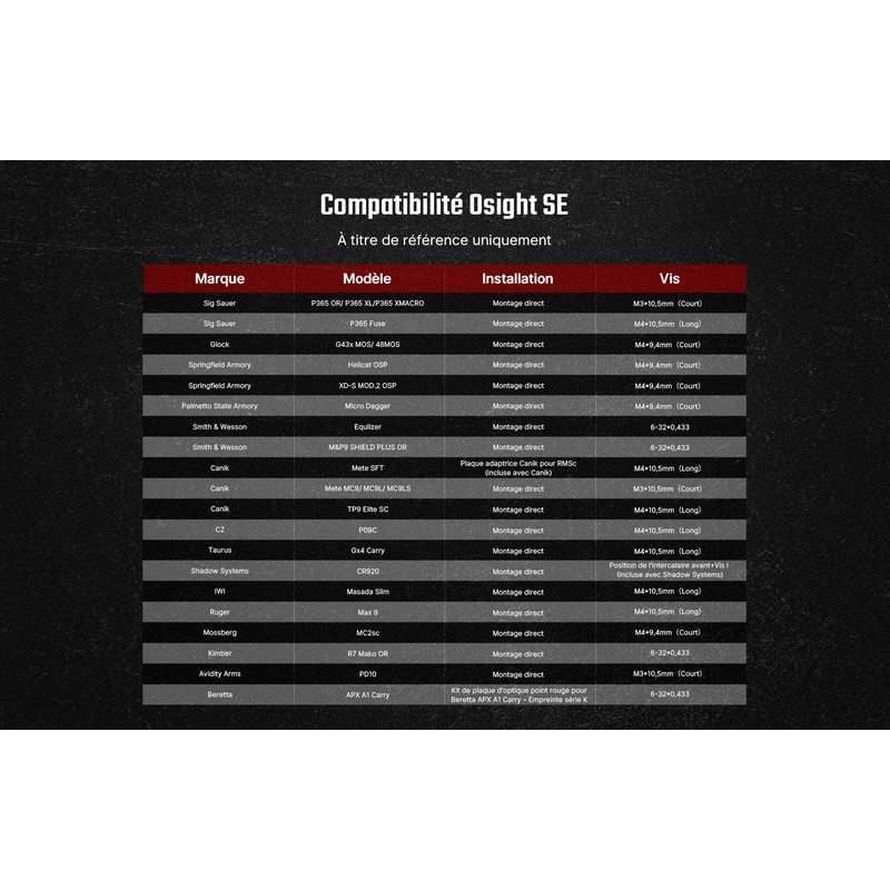 Le Osight SE conviendra parfaitement aux tireurs recherchant un point rouge moderne, compact et polyvalent, avec une excellente rapidité de prise de visée et une compatibilité RMSc très appréciée.